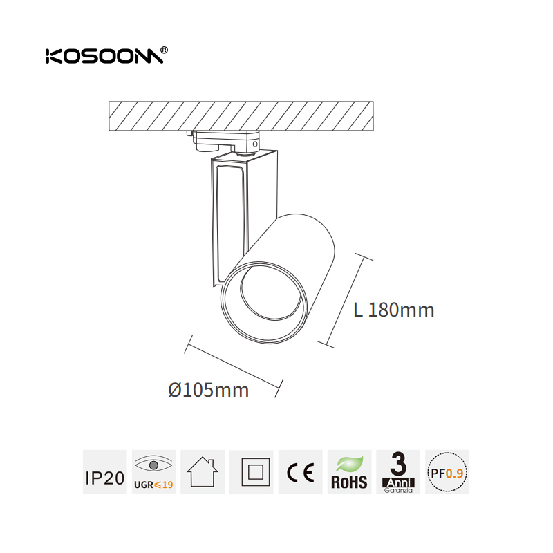 Foco de Carril LED de Alta Intensidad de 30W 2500LM, Ángulo Ajustable 24°/36°/55°- TLA208330-TLA2-KOSOOM